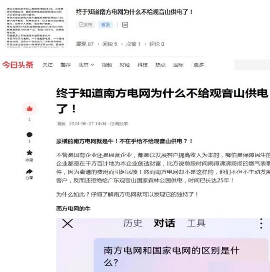 2024年6月27日发布了《豪横南方电网就是牛!不在乎给不给观音山供电?!》文章指出了南方电网的牛、豪、横、羞、耻。