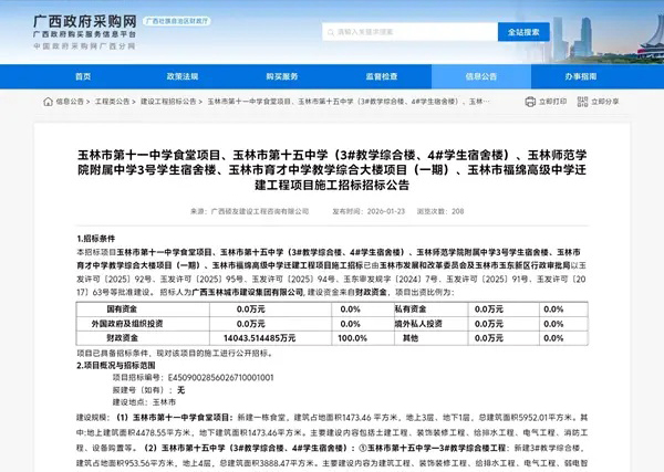 近日,有企业反映,广西硕友建设工程咨询有限公司发布的玉林市第十一中学食堂等五个学校建设项目施工招标文件(招标编号:E4509002856026710001001)及更正公告存在多项违规,向玉林市教育局等相关部门提交投诉函,直指项目合并招标、中小企业扶持、业绩加分等环节涉嫌违法,目前无处理进展。